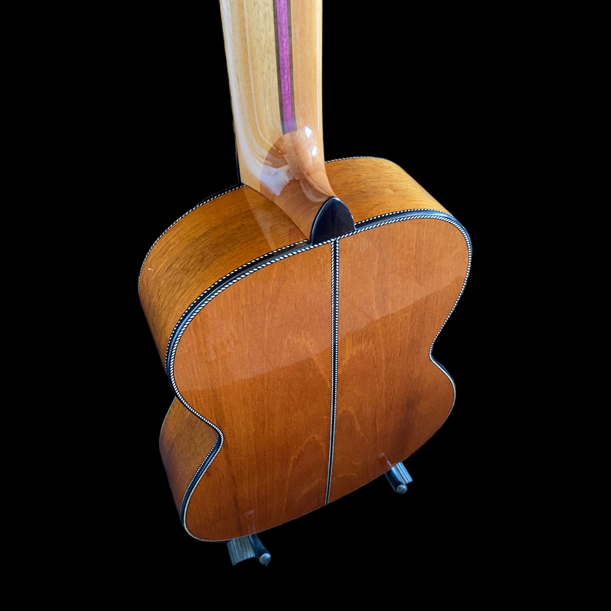 Produzido manualmente pelo Luthier Araujo, este modelo combina a resposta acústica do pinho com o caráter tonal do mogno, resultando em um instrumento com graves bem articulados, médios presentes e excelente clareza. A escala em ébano contribui para ataque preciso, estabilidade e durabilidade.