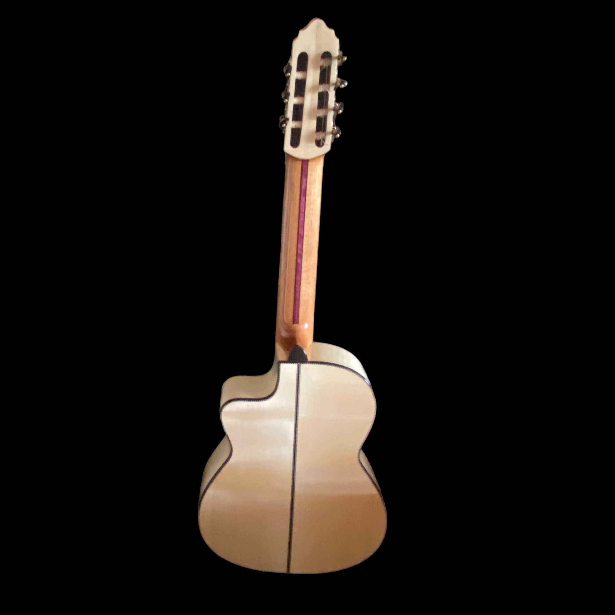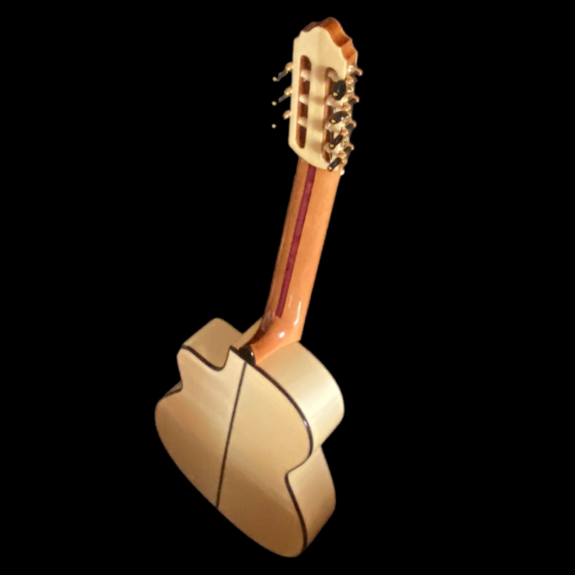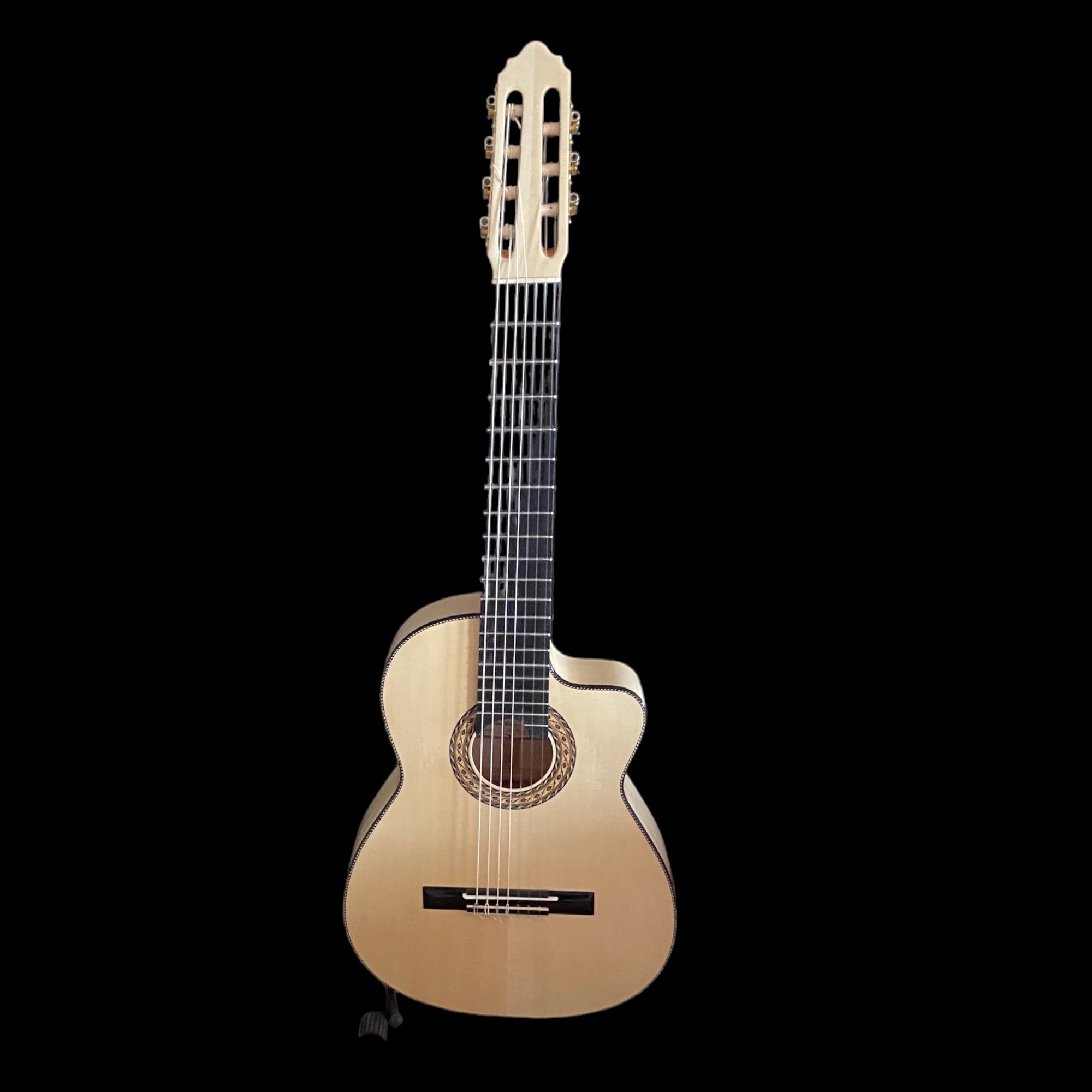 7 cordas nylon. Corpo em Maple, tampo em Pinho e escala em Ébano. Construção artesanal do Luthier Araujo.