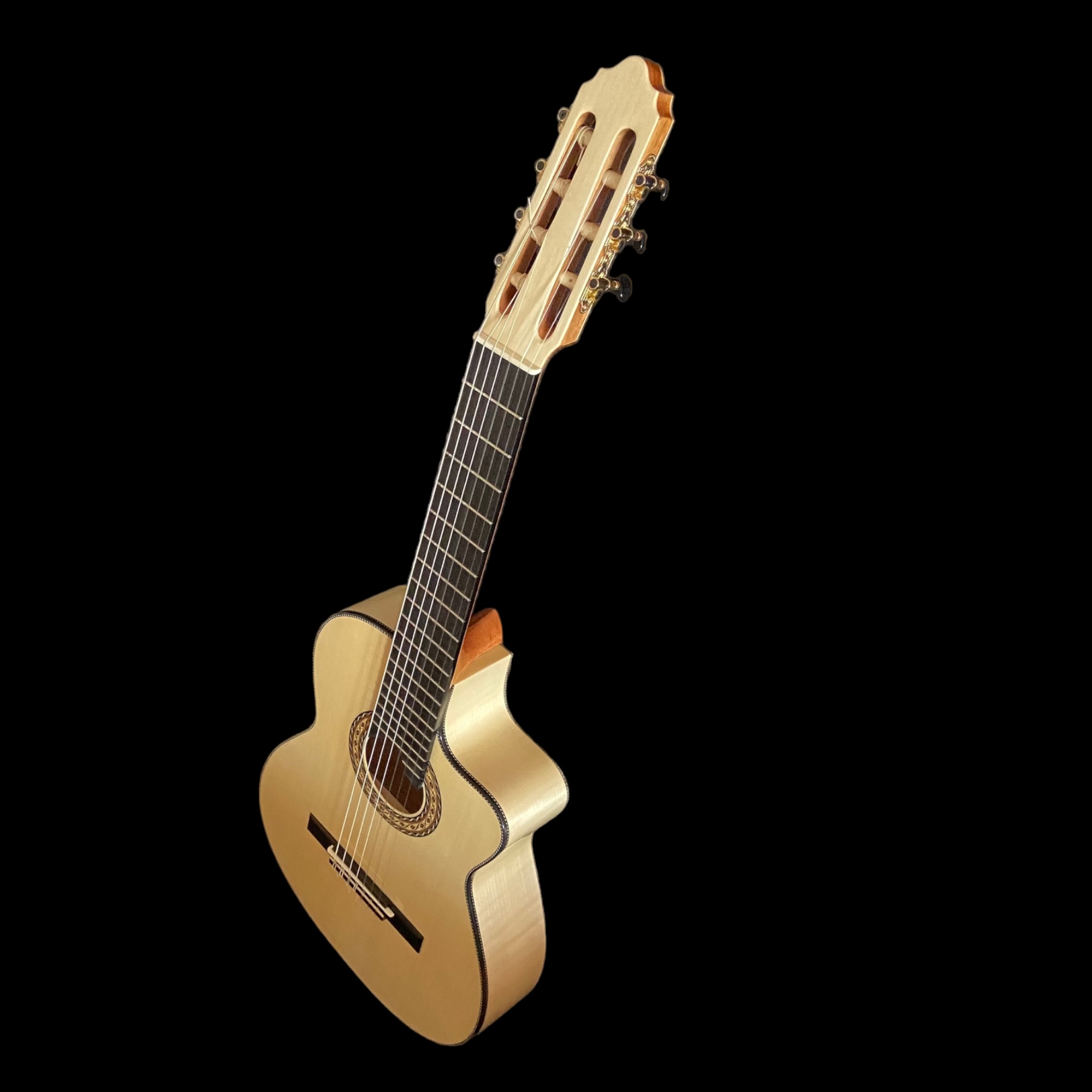 O Violão 7 Cordas Clássico Cutaway Araujo Maple Pinho Ébano é um instrumento de luteria artesanal desenvolvido para oferecer equilíbrio tonal, conforto e definição sonora. Construído com maple, pinho e ébano, entrega resposta precisa, projeção consistente e timbre refinado para repertórios exigentes.
